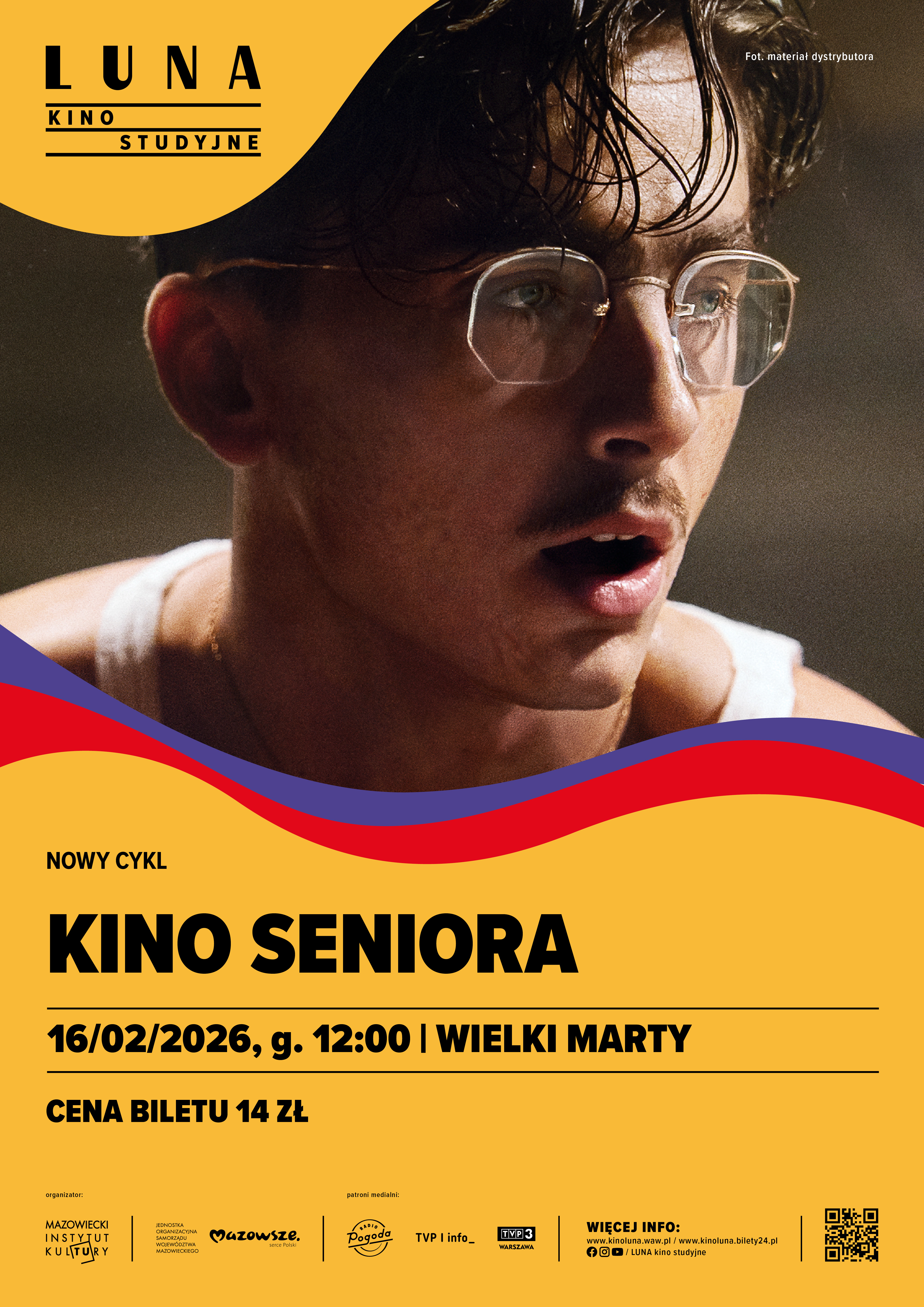Kino Seniora to cykl seansów filmowych skierowany do widzów 60+, którzy cenią ambitne kino, dobre historie i komfortowe warunki oglądania.Zapraszamy na spotkania filmowe w spokojnej, przyjaznej atmosferze - w samo południe, z tańszymi biletami i repertuarem dobranym specjalnie z myślą o dojrzałej widowni.W każdy poniedziałek, zawsze o godz. 12:00, stała cena biletu 14 zł.Opis filmu:„Wielki Marty” to opowieść o człowieku, którego nic nie jest w stanie powstrzymać przed spełnieniem swo