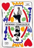 Andrzej Wajda powiedział o swoim dziele: "Niewinni czarodzieje" są dziś pewnie jednym z najbardziej obojętnych politycznie filmów, jakie zrealizowałem. Całkowicie inaczej oceniały go jednak władze z czasów Gomułki. Niewinny temat młodego lekarza, który lubi elastyczne skarpetki i dobre papierosy, posiada magnetofon i nagrywa na nim swoje rozmowy z dziewczętami, którego jedyną pasją jest gra na perkusji w jazzowym zespole Krzysztofa Komedy - okazał się bardziej drażliwy dla ideologów-wychowawców niż Armia Krajowa i powstanie warszawskie." "Niewinni czarodzieje" to studium psychologiczne dwojga młodych ludzi. On - to młody lekarz sportowy, "po godzinach" jazzman w piwnicy muzycznej. Wygórowanych ambicji nie ma, marzy o domku i samochodzie, do uczuć nie przywiązuje większej wagi. Ma swoje sposoby budowania pewności siebie - tleni włosy, zachowuje się swobodnie, jeździ na motocyklu, jego kawalerka to pusta nora pełniąca funkcję pokoju z różnymi trofeami i fotografią Einsteina. Ona - to dziewczyna spotkana przypadkowo w lokalu muzycznym. Nic bliższego o niej nie wiadomo. Ta para spędza ze sobą noc, prowadząc swoistą grę miłosną na miny i pozy, a jednak jest coraz bardziej sobą zafascynowana. W miarę upływu czasu beztroska erotyczna gra przeradza się w rozbieranego pokera. W grze w "zapałki" stawka jest wysoka: jeśli dziewczyna przegra, odda się Bazylemu. Ostatecznie jednak ten nie korzysta z okazji. Cynizm, nonszalancja, swoboda obyczajowa bohaterów są jedynie maską, pod którymi kryją się normalne ludzkie uczucia lub chociażby tęsknota za nimi. Pelagia wraca do Bazylego następnego dnia. Film wywołał szeroką społeczną dyskusję. Recenzje po jego premierze były skrajnie różne - od atakujących po afirmacyjne. Nie przeszkodziło to "Niewinnym czarodziejom" w zdobyciu dyplomu na MFF w Edynburgu w 1961 roku.