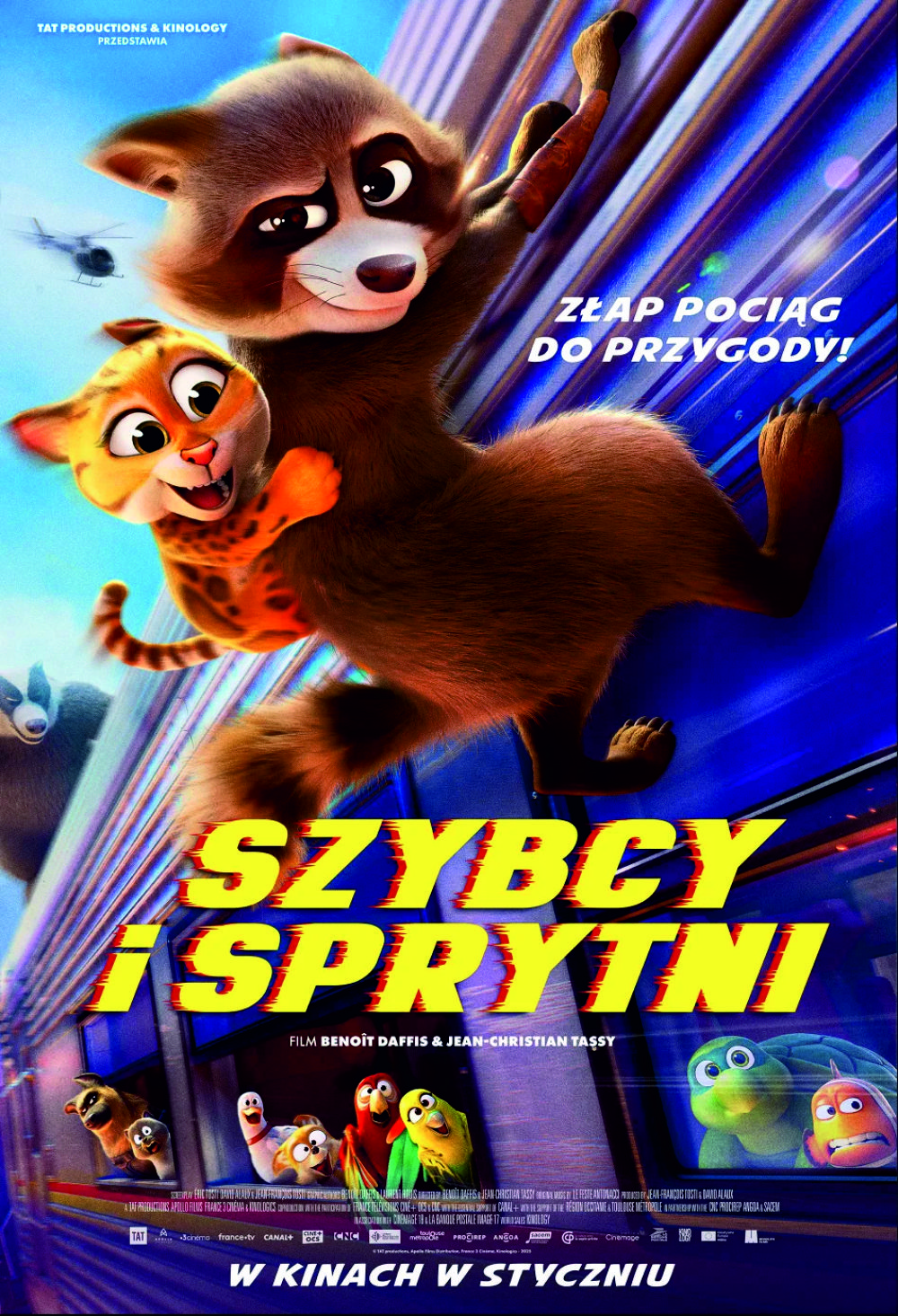 Prod. Francja/USA 2025, animacja, 90 minGdy sprytny szop o ksywce "Sokół" ładuje się na gapę do superszybkiego pociągu, którym zamierza dotrzeć na drugi koniec Ameryki, nie podejrzewa, że właśnie trafił w pułapkę. Tuż przed odjazdem, z pociągu ewakuowani zostają wszyscy pasażerowie oprócz licznie zgromadzonych na pokładzie zwierzaków domowych. To właśnie one, z Sokołem na czele będą musiały stawić czoła żądnemu zemsty borsukowi, który przejął zdalną kontrolę nad pędzącym jak pocisk składem. Szop Sokół, wraz z podejrzliwym policyjnym psem, parą wygadanych papug, dzielną jak lew chihuahuą, błyskotliwą rybką i całą skrzydlato futrzastą ekipą, zrobią wszystko by odkryć jaki jest plan tajemniczego porywacza. A gdy to zrobią, sierść stanie im dęba z przerażenia. Czy ich odwaga, spryt i gotowość do współpracy, pozwoli im ocalić skórę i zapobiec katastrofie?